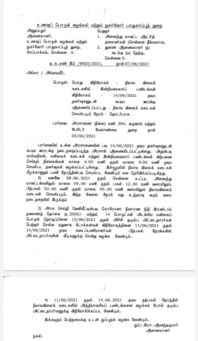 முதல் 14/06/2021 முடிய கடைப்பணியாளர்கள் பிற்பகல் நேரங்களில்